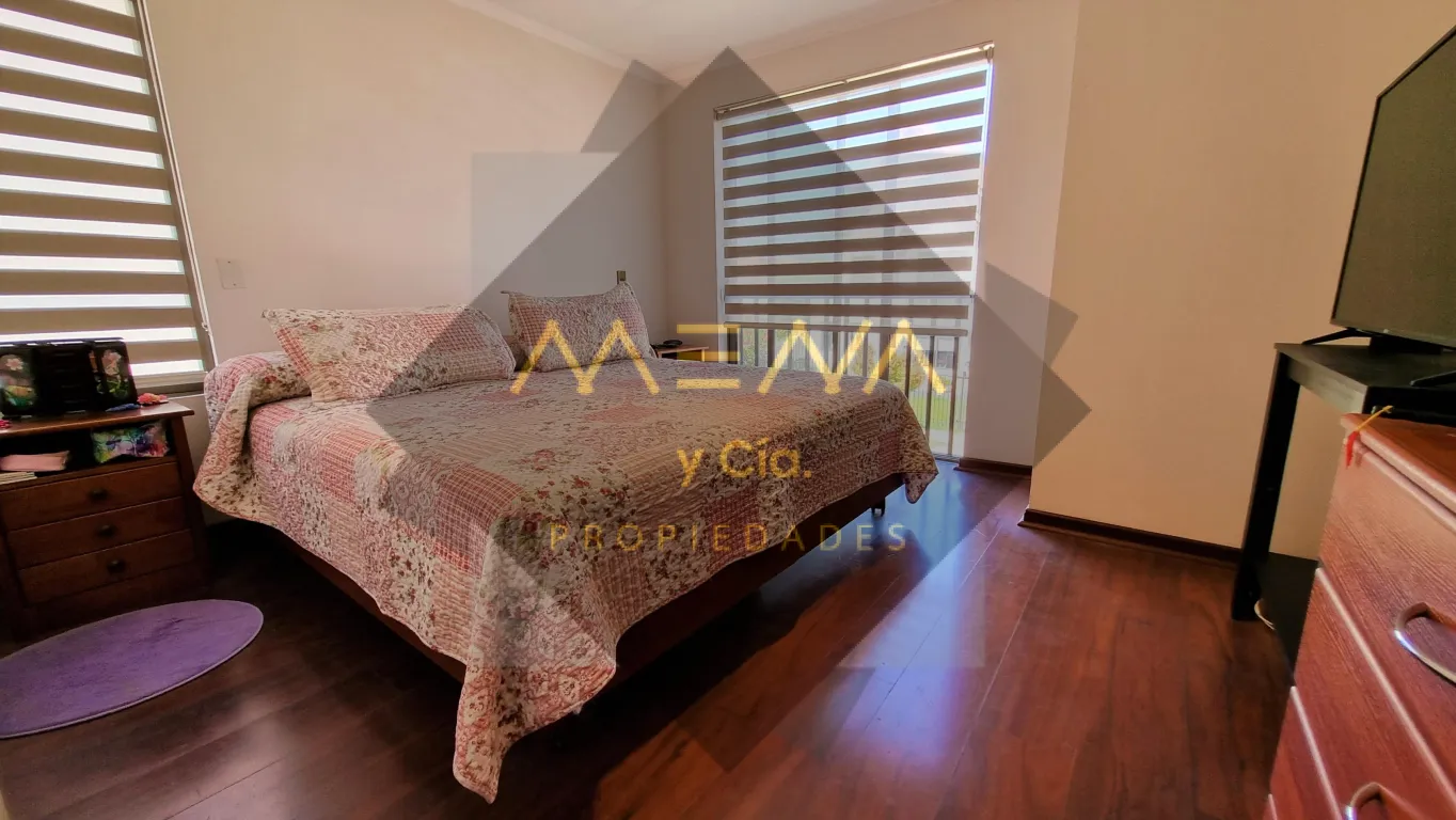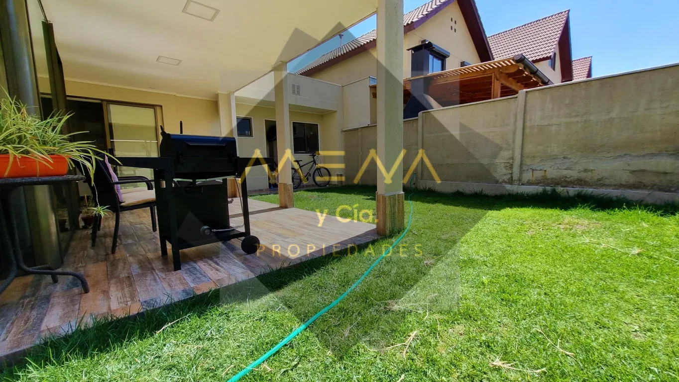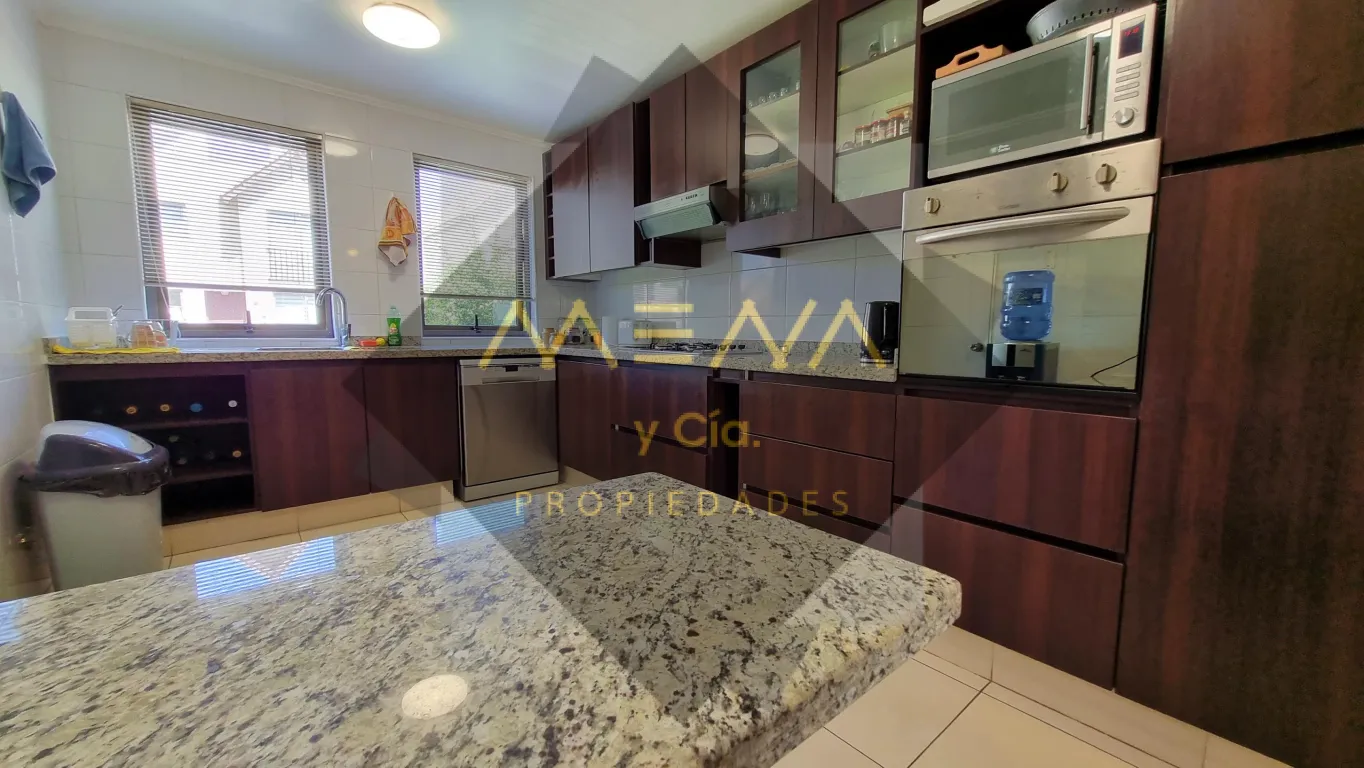 Hermosa casa de 3 pisos, la cual tienes que visitar, de 3 dormitorios, 4 baños, casa de 132m² construidos y 177m² de terreno, ubicada en consolidado barrio, que cumple con los estándares exigidos por las familias, seguridad, vida familiar, áreas verdes, emplazado en un entorno de excelente conectividad. Propiedad con muy buena iluminación, bien distribuida. Primer piso: Amplio Living con salida a terraza, y comedor separado, una gran cocina moderna con finas terminaciones, amoblada y equipada con comedor diario, más loggia, 2 baños uno de visitas. Segundo piso: habitación principal con baño en suite, además de una gran sala de estar o 4to dormitorio. Tercer piso: cuenta con 2 amplias habitaciones con hermosa vista y baño compartido. Precioso patio con jardines, terraza, y 1 bodega, ante jardín y patio lateral para 1 automóvil. Condominio con conserjería y seguridad 24/7.